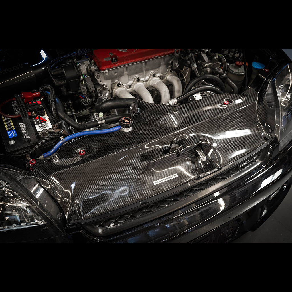 Regular price $245.00 Sale price $196.00 Save $49.00The cooling system is a vital component of your Prelude's operation. The radiator needs constant airflow, with minimum turbulence, to be as efficient as possible. Unfortunately, gaps in the structure around the radiator allow air to escape, resulting in lost efficiency. We have designed the Password:JDM Dry Carbon Fiber Cooling Plate for the 97-01 Honda Prelude to eliminate this problem. By preventing air to escape over the top of the radiator, these cooling plates allow a maximum amount of airflow directly to your radiator, resulting in reduced coolant temperatures during aggressive driving.